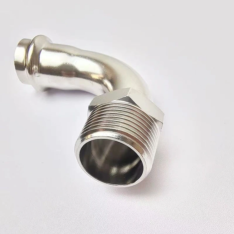 ਸ਼ੇਂਚੀ ਦੀ ਉੱਚ-ਕੁਸ਼ਲਤਾ ਵਾਲੀ ਡਬਲ-ਪ੍ਰੈਸ ਮੇਲ NPT 90 ਡਿਗਰੀ ਐਲਬੋ ਉੱਚ-ਗੁਣਵੱਤਾ ਵਾਲੇ ਸਟੇਨਲੈਸ ਸਟੀਲ ਤੋਂ ਬਣੀ ਹੈ ਅਤੇ ਇਸ ਵਿੱਚ ਇੱਕ ਸ਼ੁੱਧ ਪ੍ਰੈਸ-ਫਿੱਟ ਕੁਨੈਕਸ਼ਨ ਡਿਜ਼ਾਈਨ ਹੈ। ਕਨੈਕਸ਼ਨ ਸਥਿਰਤਾ ਨੂੰ ਯਕੀਨੀ ਬਣਾਉਂਦੇ ਹੋਏ, ਇੰਸਟਾਲੇਸ਼ਨ ਨੂੰ ਵੈਲਡਿੰਗ ਤੋਂ ਬਿਨਾਂ ਪੂਰਾ ਕੀਤਾ ਜਾ ਸਕਦਾ ਹੈ।